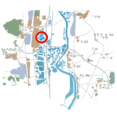La vallée de la Moselle à hauteur de Maizières-lès-Metz comporte de nombreux plans d'eau, pour la plupart d'anciennes gravières où l'extraction des granulats a été arrêtée et dont la revégétalisation se poursuit depuis des années. |