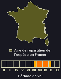 Quelques émergences ont pu être notées dès la fin du mois d'août mais l'espèce est surtout présente en septembre au parc de Brieux. |