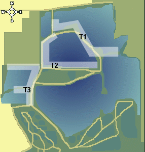 Inventaire et statut des espèces observéesProtocole d'inventaireTrois transects d'environ 600 mètres de long ont été définis pour l'estimation de l'abondance relative de chaque espèce sur la zone d'étude. Ces parcours ont été choisis en fonction des différents types de végétation rivulaire et de la fréquence des observations d'odonates. Les zones les moins riches en espèces n'ont pas été retenues. |
