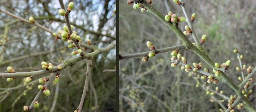 Photos : bourgeons le long d'une haie au nord de l'étang 2 début mars. |