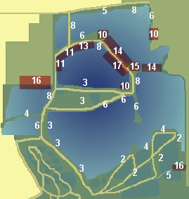 Zones d'intérêtL'inventaire n'ayant pas révélé la présence d'espèces d'odonates à forte valeur patrimoniale (espèces inscrites en liste rouge), les zones d'intérêt ont été définies en fonction de la diversité des espèces qui y ont été observées de juin à octobre. Le score attribué à chaque zone correspond simplement au nombre total d'espèces, sans considération de rareté ni d'abondance relative sur la zone d'inventaire. Les scores les plus hauts sont atteints dans des zones présentant une végétation rivulaire dense. |