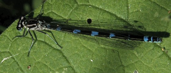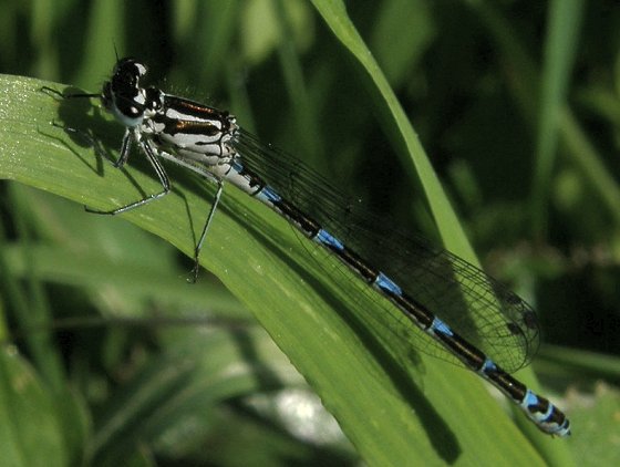 Coenagrion pulchellum, Femelles immaturesLes agrions exclamatifs (Coenagrion pulchellum) femelles sont très difficile à décrire. Elles peuvent se présenter sous deux formes, verte ou bleue, et sont excessivement variables au niveau des teintes et des marques noires sur le dessus de l'abdomen. Ces femelles sont facilement confondues, en forme bleue, avec des mâles d'autres espèces du genre Coenagrion. |