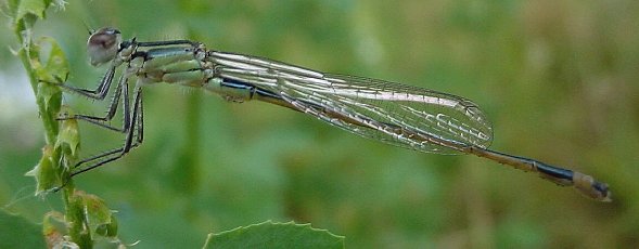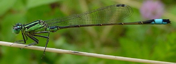 Ischnura elegans, Mâles immaturesLes mâles immatures de l'Agrion élégant (Ischnura elegans) sont verts dès l'émergence et acquièrent progressivement une coloration bleue. |