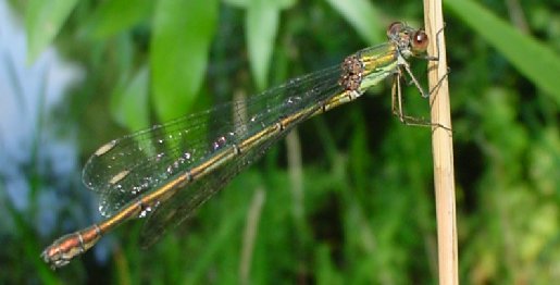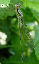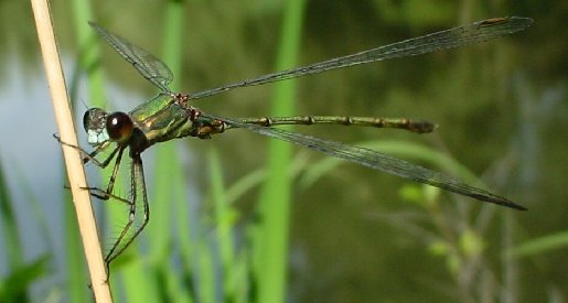 Photo : Leste vert (Lestes viridis), femelle mature à coloration verte. |