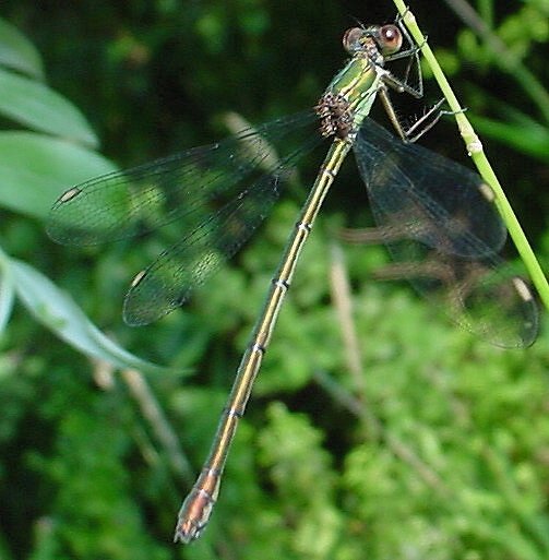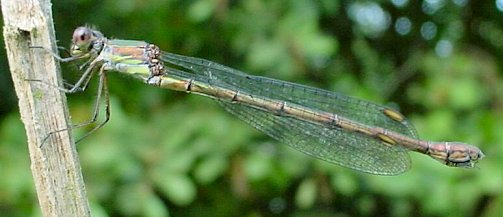 Lestes viridis, Femelles maturesLes lestes verts (Lestes viridis) femelles ont un abdomen plus épais que celui des mâles. |